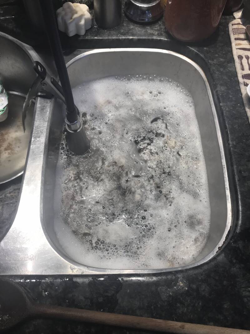9h : Vous pensiez que le plus dur était passé ? Moi aussi ! Mais après cette première étape, la deuxième est encore plus longue et fastidieuse : il faut nettoyer la laine de tout ce qui a été accumulé au cours de l’année. Croyez moi la laine ça accroche tout. Il faut séparer les fils de laine au dessus d’une grille pour en faire tomber la majorité de son contenant de saleté. Après ce premier processus vient le premier lavage, à l’eau chaude et au savon, puis au rinçage, autant de fois que nécéssaire, à l’eau claire cette fois ci. Pour la suite on verra, honnêtement on en est encore très loin.