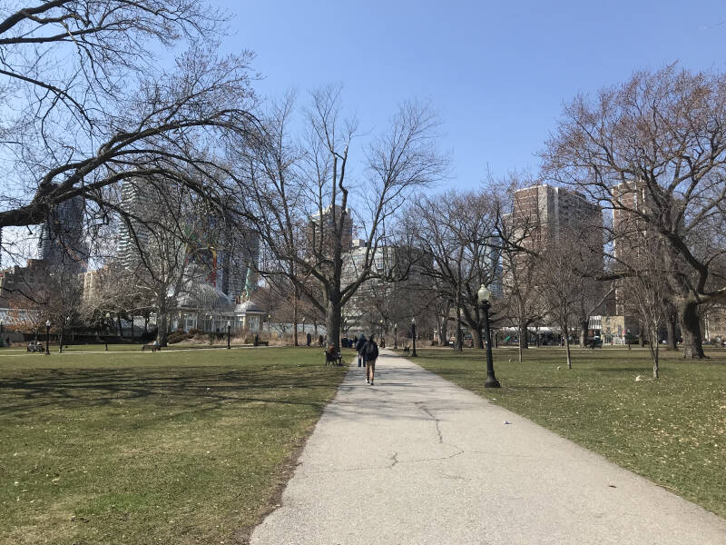 10h : Missions explorations aujourd’hui. J’ai porté mon dévolu sur le grand Riverdale Park à une petite demi heure de marche. J’en profite pour découvrir les autres espaces verts sur mon chemin pour repérer ceux dans lesquels Oïkia pourrait se défouler un peu sans laisse.