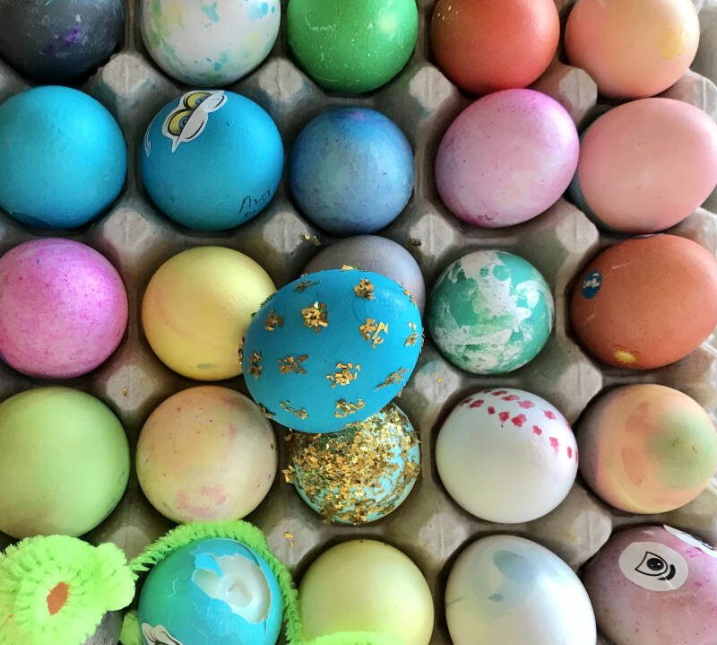 13h : Ils m’ont manqué ! Je suis ravie de les retrouver. Carrie me serre dans ses bras et me présente à tout le beau monde présent pour l’occasion. Toute la famille semble s’être réunie comme à noël. Tante, oncle, cousin, cousine, frère, sœur, bref tout le monde est là pour un vrai repas de fête. Plusieurs tartes sont déjà sur la table qui se remplie au fur et à mesure de denrées alimentaires diverses. C’est un peu perturbant pour moi puisque le repas sera celui du « soir » ici, donc vers 17h30. D’ici là on jouera aux jeux de sociétés, on discutera et on peindra de beaux œufs des poules de la ferme.